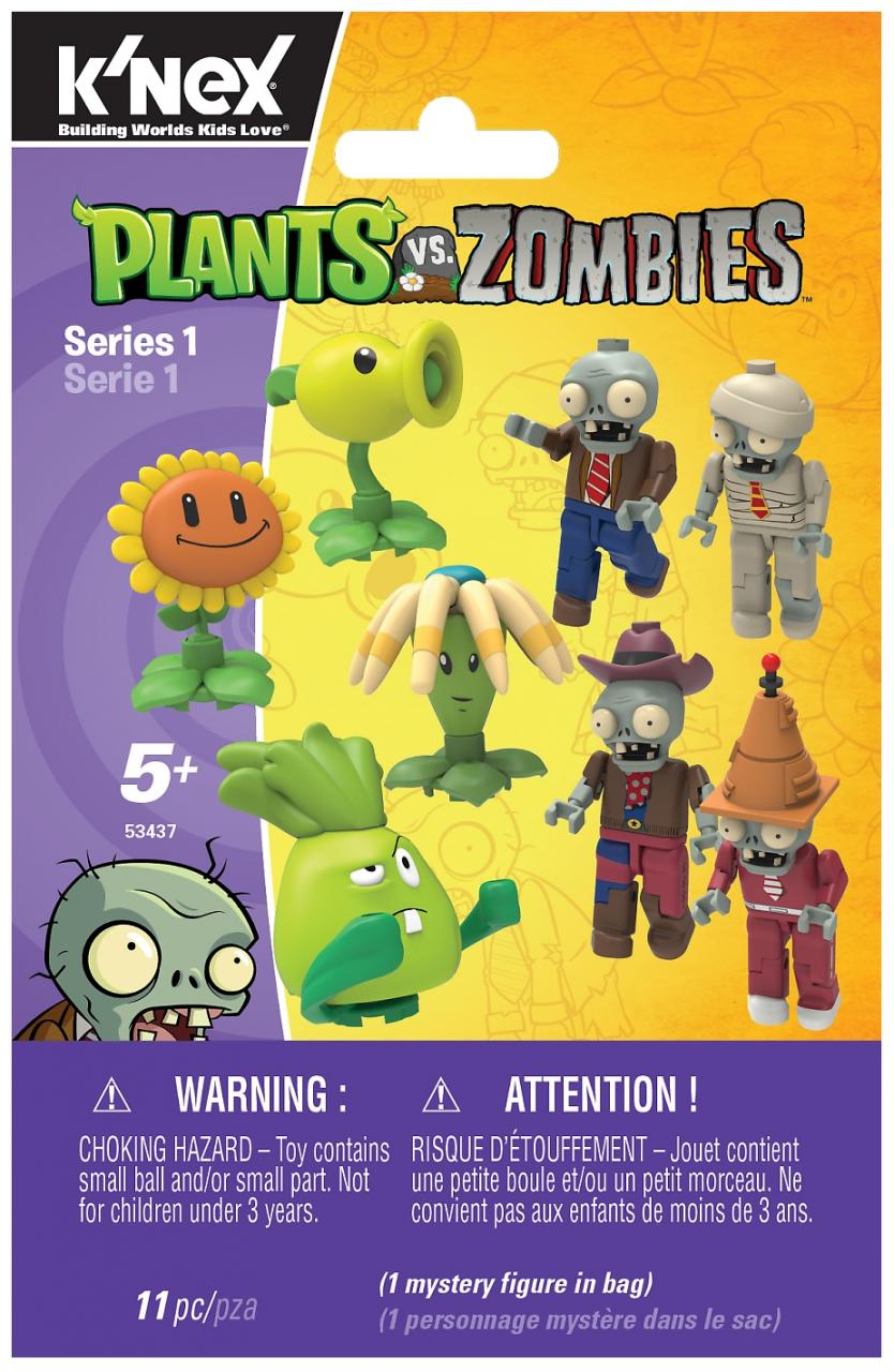 K'NEX provides fans a look at part of their Plants vs Zombies building set line, the photo showing off the first series of blind-bagged minifigures. Based on the hit video game series from PopCap Games, the K'NEX Plants vs Zombies series will star such colorful characters as Sunflower, Wall-nut, Peashooter, Zombie, Mummy Zombie, Pirate Zombie and other popular elements from the game. The line will debut at Toy Fair next month and will become widely available in the Fall of 2014.
