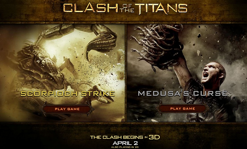 To help get fans excited for the theatrical launch of Clash of the Titans April 2nd, Warner Bros. has released two new online games. Found on the official website HERE, the two free mini-games include Scorpioch Attack and Medusa's Curse, both very entertaining adventures.