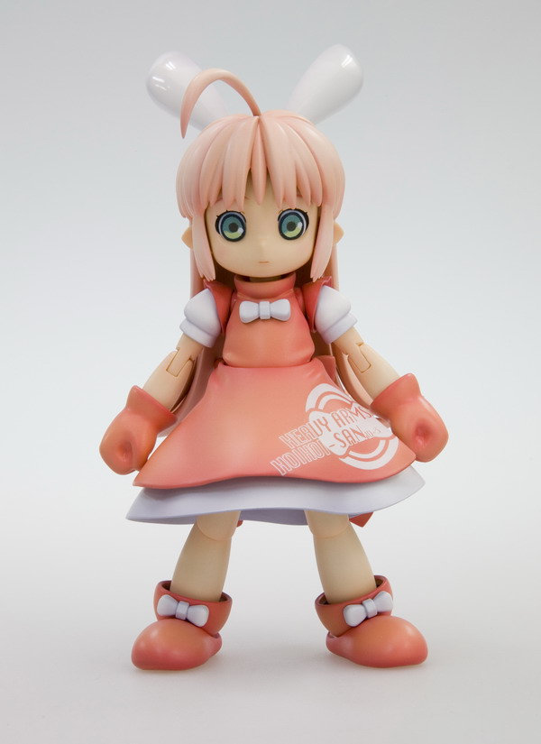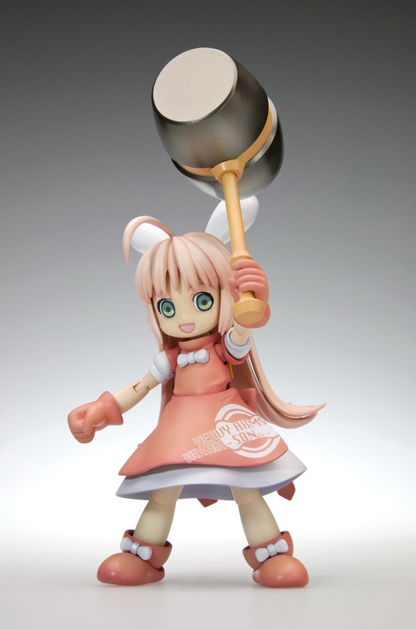 This bug warrior measures 4 inches tall and wears her traditional cute maid's outfit (with matching slippers and bunny ears). Hoi Hoi-san comes with two different faces – one happy and one angry for furious combat. Her accessories include the massive Hoi Hoi Hammer, heavy machine gun, and exclusive "Bug Killer" bottle. She comes with special decals for her eyes and the logo on her skirt.