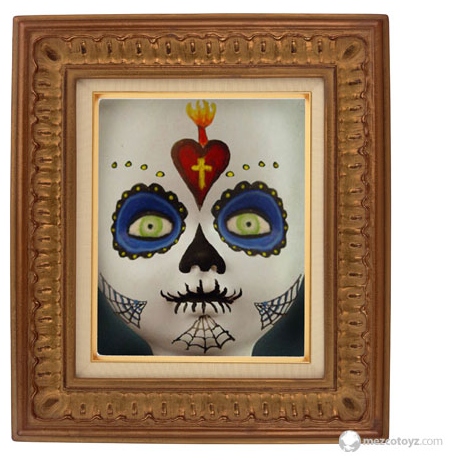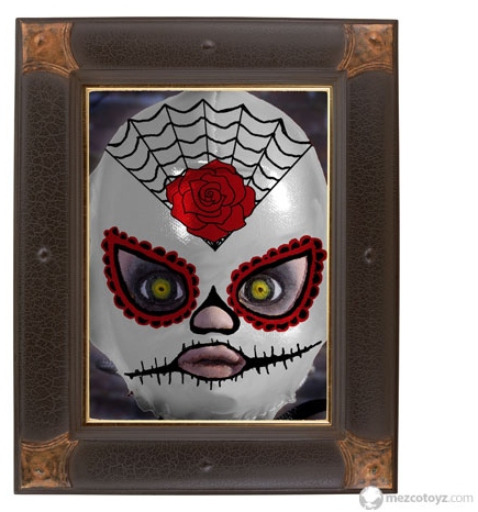 Slated for release this September, this assortment pays tribute to the skeleton-filled holiday El Día de los Muertos, better known as "The Day of the Dead." The series features intricate skull designs (pictured below) and elaborate costumes, depicting traditional imagery with a Living Dead Dolls twist. Each doll comes in a signature coffin package with death certificate.
