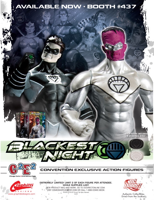 Graphitti Designs/DC Direct have revealed that their WonderCon 2010 exclusive Black and White Lanterns will ALSO be offered at this weekend's event, C2E2. Continuing SDCC's line of Hal Jordan figures in each Lantern Corps uniform are two new figures: Black Lantern Hal Jordan and White Lantern Sinestro (Read our recent review HERE).