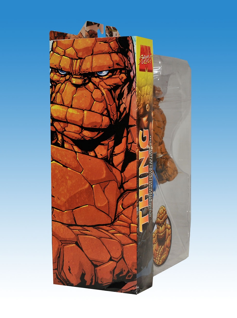 Diamond Select Toys provides a packaged look at the muscle behind the Fantastic Four, The Thing. This massive figure measures 8 inches tall and includes a deluxe hoverboard base. This figure is due out in May priced at a SRP of $19.99.