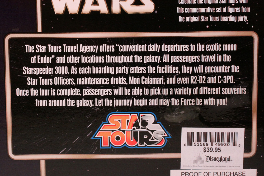 Although the popular attraction has started to show its age, the number of fans has never been stronger but it will be bitter sweet as Star Tours is set to shut its terminal gates in both Anaheim and Orlando this summer (July and September respectively). Don't worry, a brand new adventure(s) is coming to our galaxy in 2011. But to celebrate the original Star Tours, Disney and Lucasfilm joined forces with Hasbro to create a commemorative set of characters to tour the galaxy.