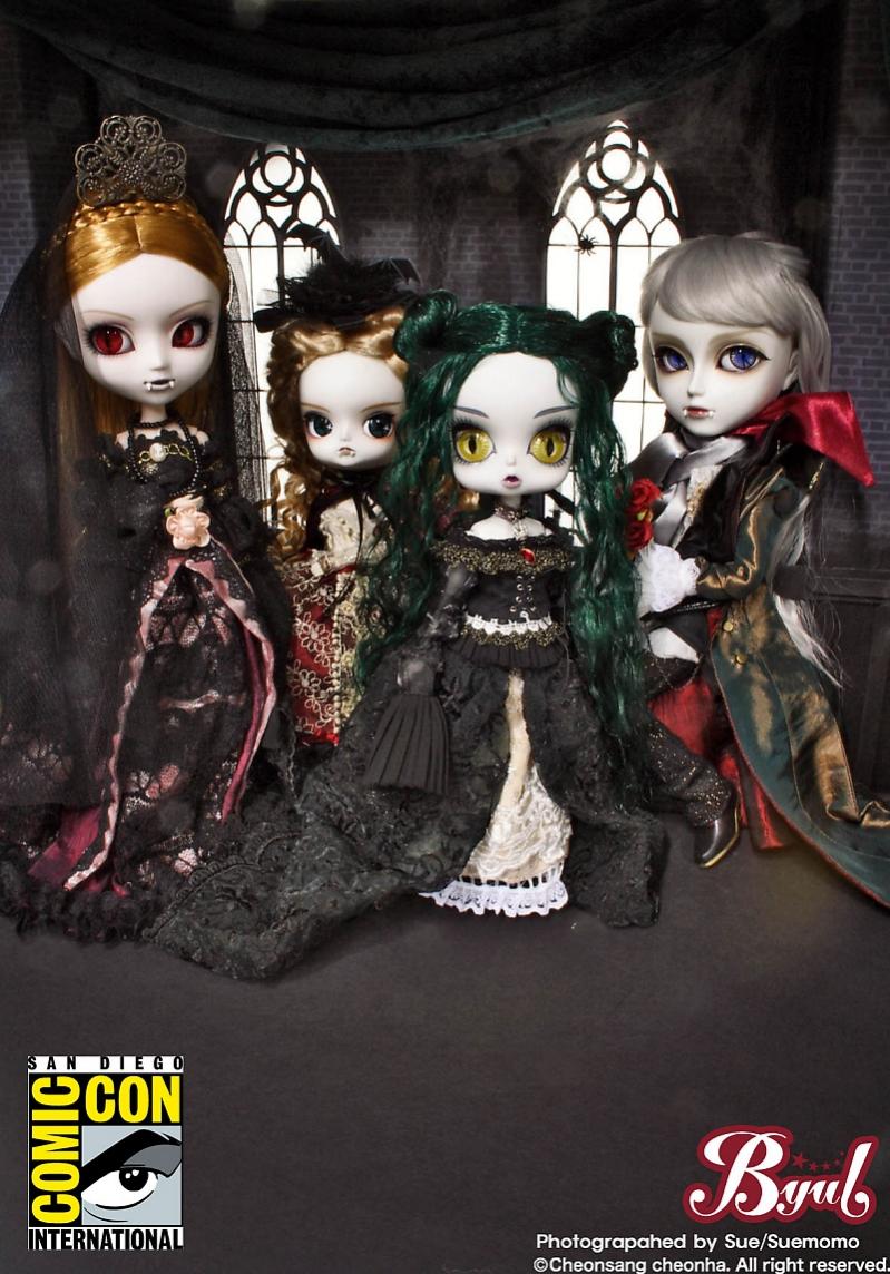 Jun Planning USA will be adding to their collectible line of Pullip dolls with a special release at San Diego Comic-Con 2010. To be offered July 22-25 of the show, this exclusive will be Vampire Byul "Lilith" (pictured above, third doll from the left).