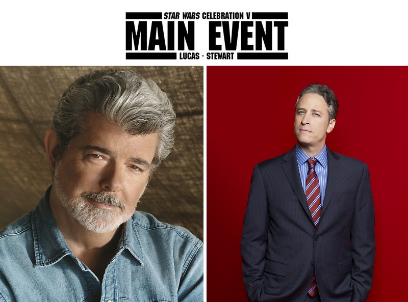 Lucasfilm today announced that Star Wars Celebration V will feature a live, on-stage interview with Saga creator George Lucas hosted by The Daily Show's Jon Stewart. The hour-long, candid conversation will spark a discourse sure to shed light on the storied history of the Star Wars Saga – from its past to its future, with insider insights about the many steps along the way. A self-proclaimed lover of Lucas' "galaxy far, far away," Stewart brings a fan sensibility to the interview, aiming to focus on areas of interest to the many diverse and devoted groups that have helped Star Wars endure for more than thirty years. In addition to the dialogue between Lucas and Stewart, fan questions can be submitted through the official Star Wars Celebration V website: starwarscelebration.com.