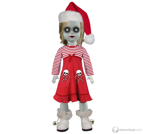 This 10-inch tall Living Dead Doll comes in a specially colored coffin and has a removable holiday hat.