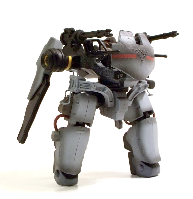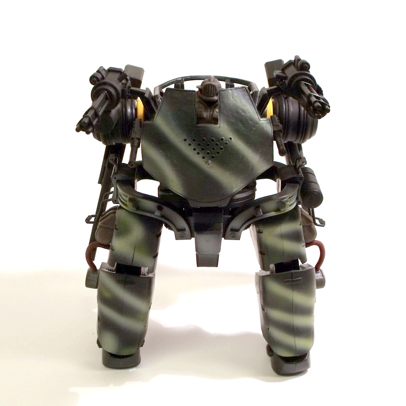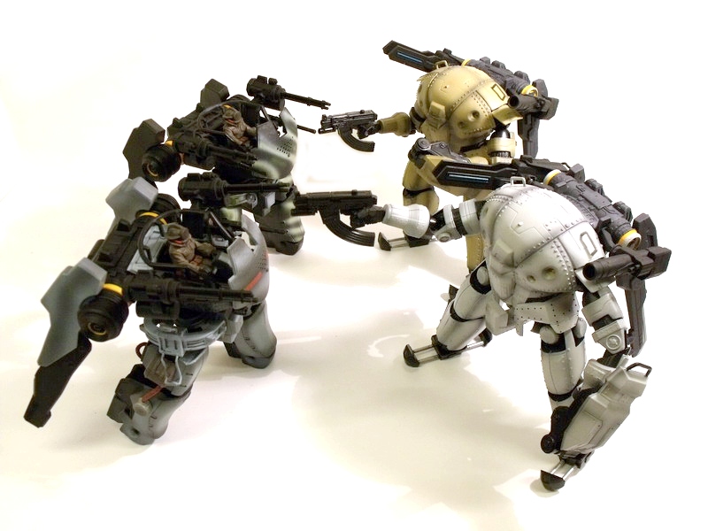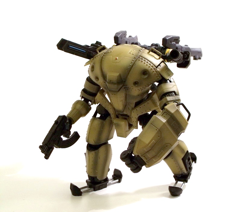 DRIO: I really like the look of the Hardballer, but I absolutely LOVE the Drio (the camoed GTF-11 Drio being my favorite). I've always been a sucker for "chicken walkers;" from my deep admiration of Robotech's Mad Cat to Star Wars' unforgettable AT-ST. The approximately 5 1/2-inch tall Drio takes the classic mecha design and adds its own sense of style, with nubby feet, finned back thrusters and a rotating armored face shield. It's open cockpit layout gives the Drio a more mobile weapons platform vibe, like an anti-aircraft gun on legs. It may be weaker in this regard, but it's no less cooler looking.
