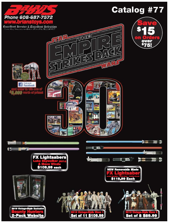 Brian's Toys is also now on Facebook! To celebrate, Brian's Toys is holding a $5,000+ Star Wars Giveaway Promotion. Go to their page on Facebook, "Like/Fan", and enter to win one of these many great prizes: