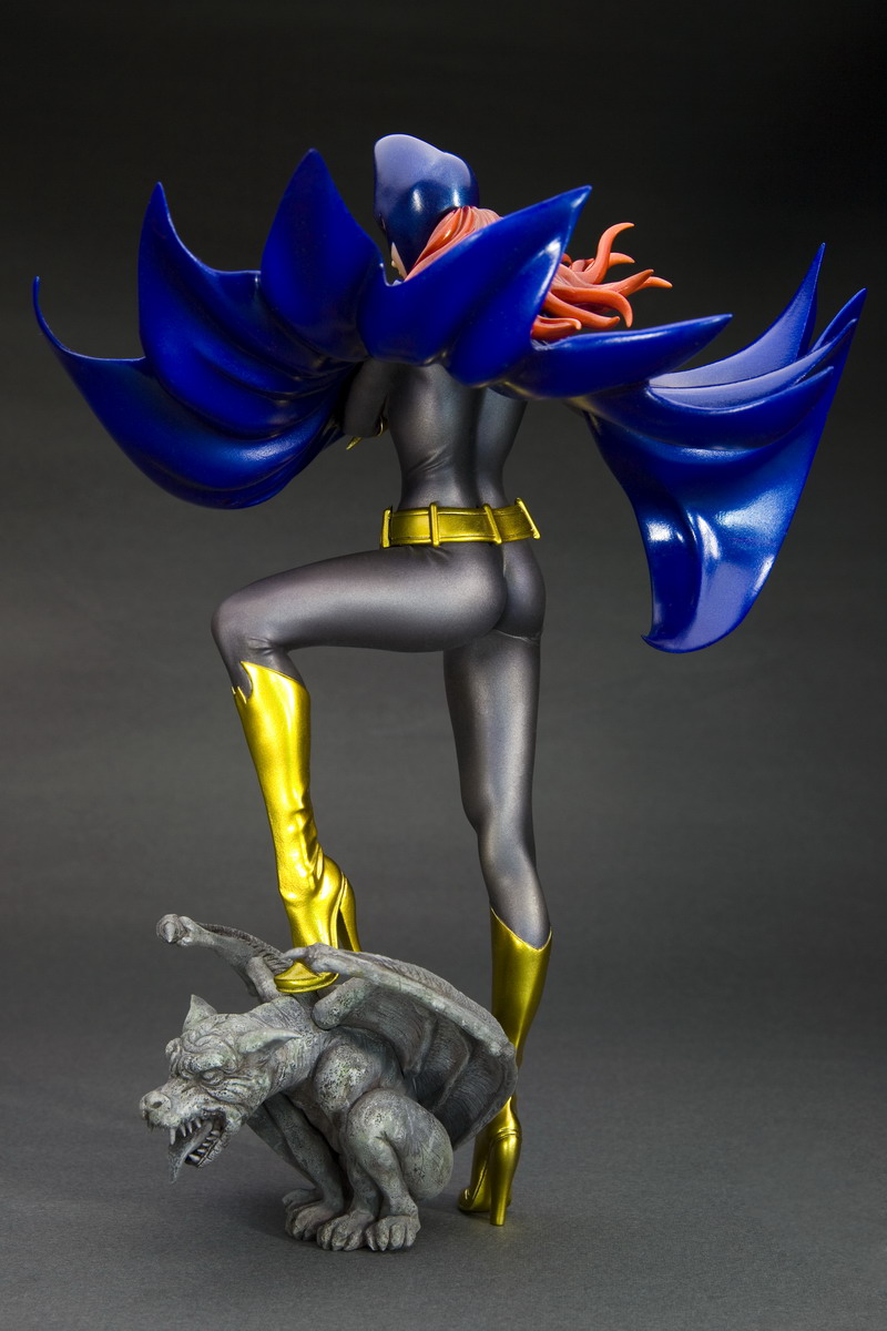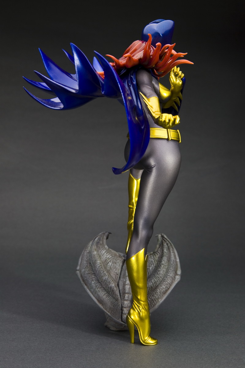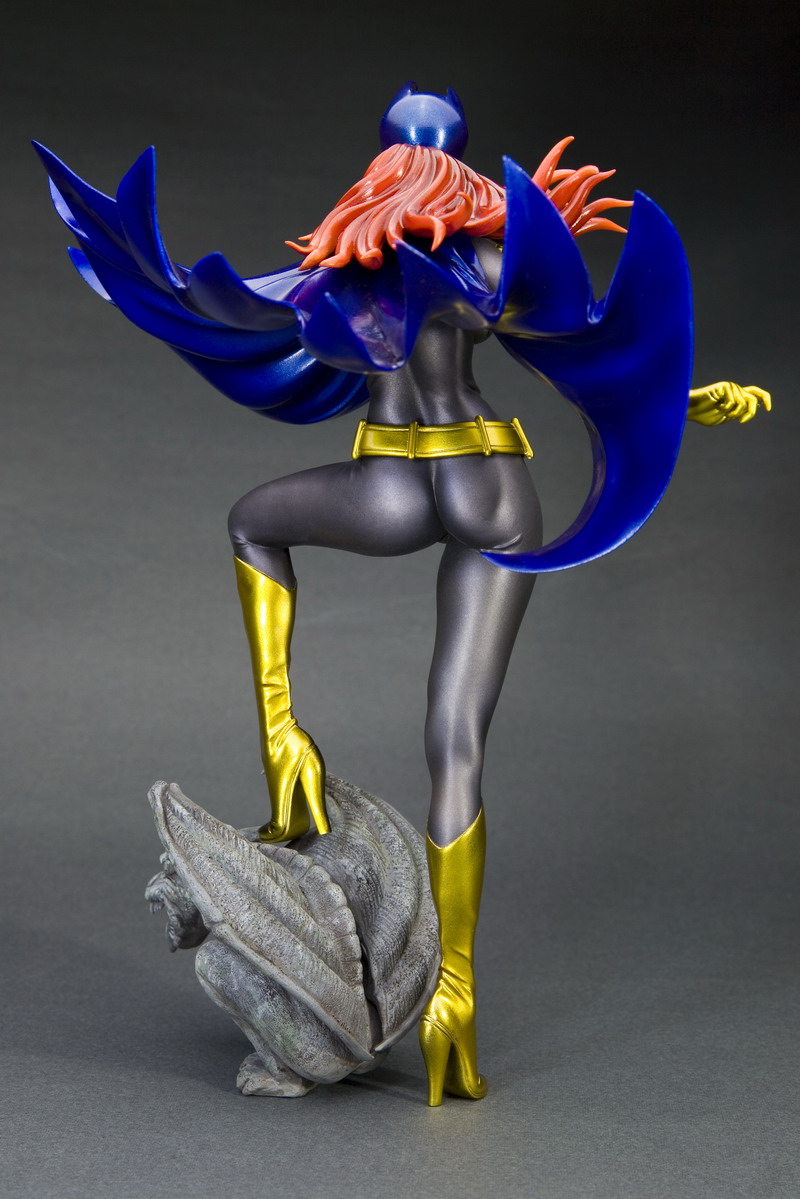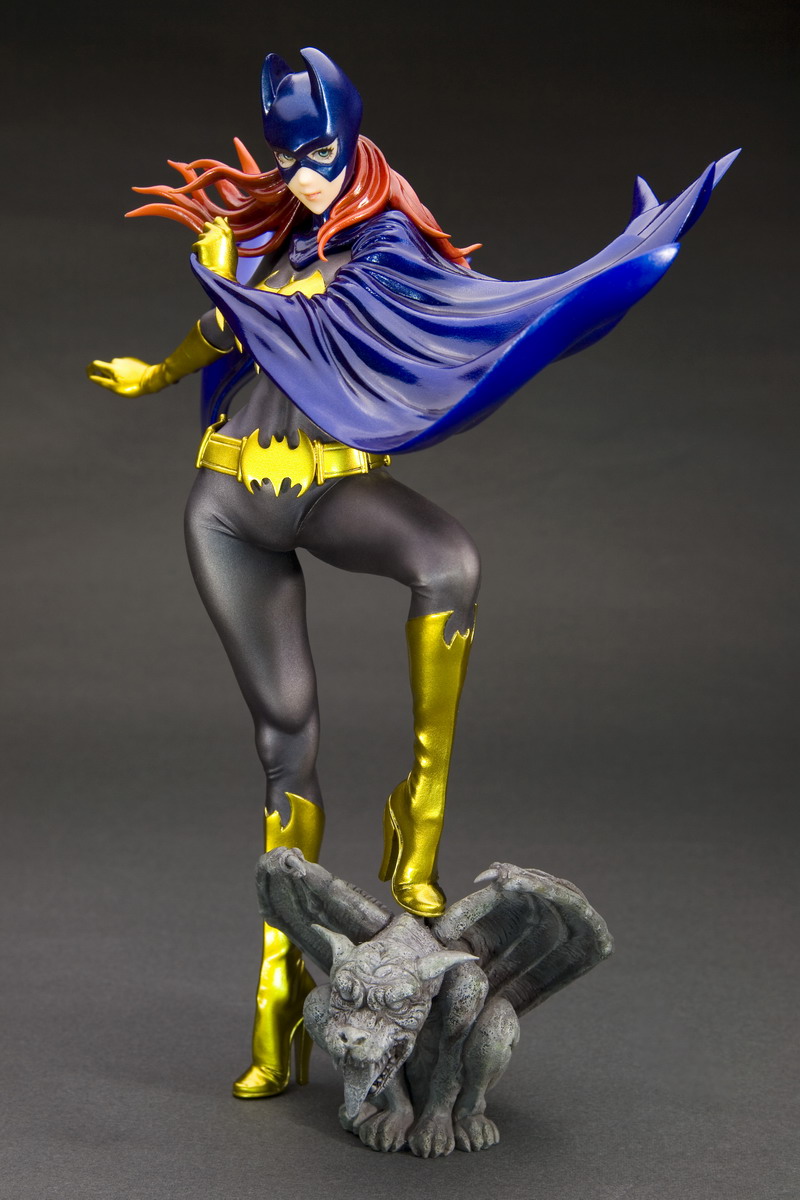 Sculpted by Atelier Bamboo, Batgirl is constructed of high-quality PVC plastic and stands approximately 9 inches tall (in an increased 1/7 scale for DC X Bishoujo statues) with the exclusive Gotham City gargoyle base.A fantastic beginning to the DC X Bishoujo line, Batgirl stops bad guys in their tracks with her sexy costume and alluring pose. Every element of her classic gray, blue, and gold bodysuit has been recreated, from her tall boots to her bat-symbol, utility belt, gloves, cape, and cowl. Barbara stands with one foot resting on a gargoyle, accentuating her long legs, while she slyly spins her cape in front of her. Batgirl's long flowing red hair is a striking contrast to her dark blue cape, especially as they both frame her beautiful Bishoujo-styled face.