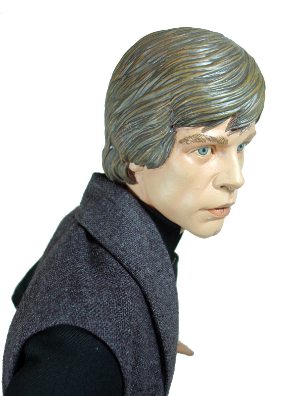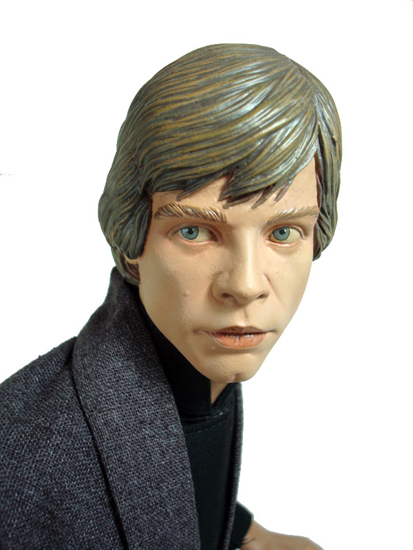 Sideshow has had a lot of practice developing and sculpting collectibles of Luke Skywalker. With two other Premium Format figures, five 1/6-scale figures, and two dioramas of the Jedi hero, there are sure to be hits and misses. But the newest Luke collectible shows off Sideshow’s dedication to quality as they present one of the best portraits sculpted for a Luke figure since they started. The head sculpt captures Mark Hamill’s likeness perfectly from his dimpled chin and creasing along his nose and mouth to his various moles.