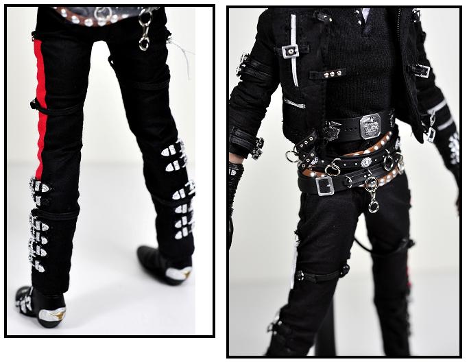 MJ in his "Bad" clothing instantly brings back images of the infamous subway scene from the epic music video. Complete with every detail, the clothing here includes not only the clothes, but the layered belts and rocker style jacket. Hot Toys - at the top of their game - has definitely produced the outfit with care and detail. Even the design of the under shirt, which is covered by the jacket, has not been neglected.