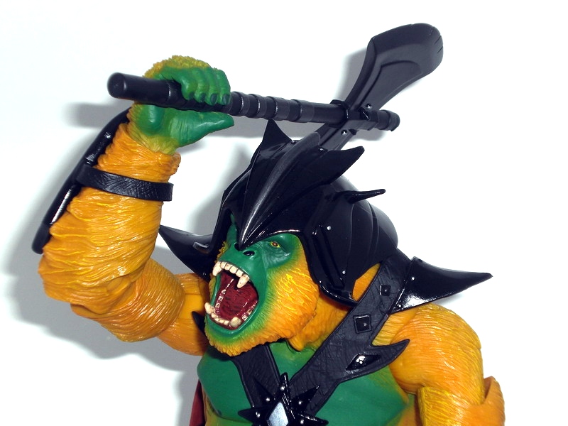 Although this figure is simply a giant gorilla, the Horsemen have once again demonstrated their unmatched creativity and artistic ability to convert the most standard character into an awesome looking figure. The ferocious ape is dressed for war with his unique removable battle armor and helmet. The figure also has a large flowing cape with harness that can be easily removed. Gygor also includes a massive two-handed battle axe that easily fits in both of his hands.