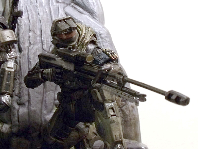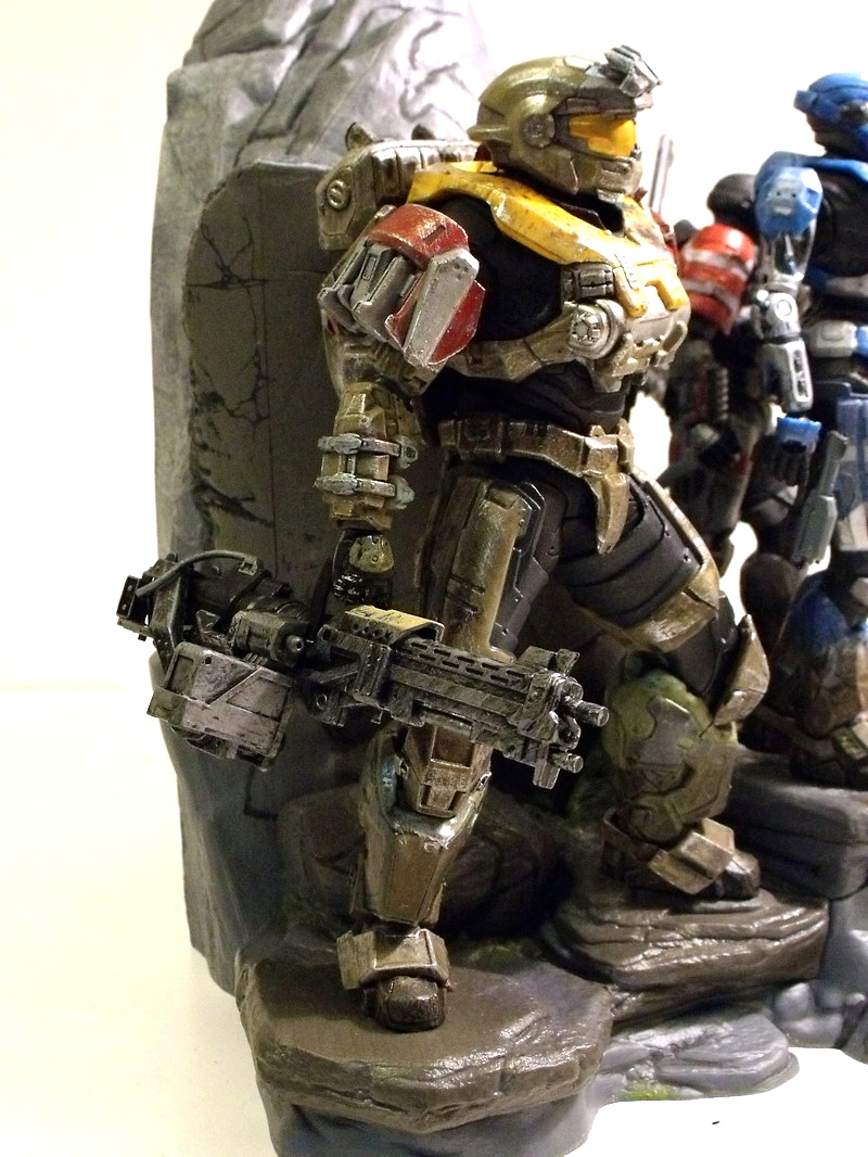 Despite being built Ford tough, some minor assemblage is required when it comes to arming the Spartan's with their intricately sculpted weapons. The guns aren't brittle, but I can easily see breakage problems if they came pre-attached to the statue. Each weapon, aside from the pre-armed Kat, easily snaps on at the character's wrist.