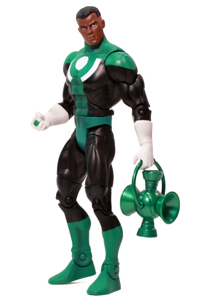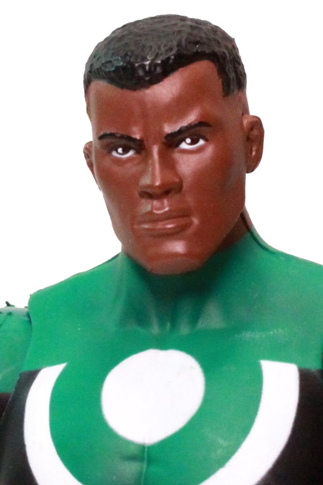 John Stewart is another very popular Green Lantern, and it's about time he's getting his due. John was part of the recent Series 11 in his standard GL uniform (with small Lantern symbol on a primarily black background). This repaint of that figure captures another specific moment, his unique style during the Mosaic series. The paint scheme is quite a bit different, with a larger green collar, huge green and white chest logo, a descending green torso stripe, green trunks, and long white gloves.