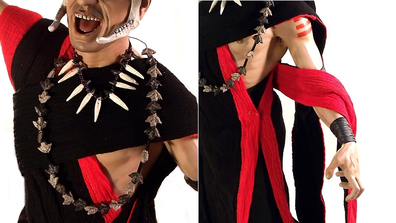 Another element that elevates the Mola Ram PFF beyond the realm of traditional statues is the real-cloth outfit he comes dressed in. A thick and well-tailored robe hangs very naturally on the figure, while two flowing sashes give the costume some depth. You'll find the latter wrapped around the figure right out of the box, and for all purposes, it looks right. It wasn't until I watched Temple of Doom for the umpteenth time that I noticed that one sash sort of drapes over his arm and the other hangs behind. Of course I could have looked at the front of the box to find that out, but that's how these things go. Mola Ram also includes two bone knecklaces that you have to place around his neck. They're incredibly intricate on this scale and really help the statue stand out. As they say, the devil is in the details.