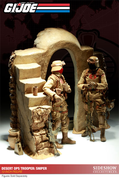 Sideshow takes their latest 12" GI Joe figure out of hiding to reveal new photos of the Cobra Desert Ops Sniper. This figure will be available for pre-prder through the Sideshow Newsletter on Thursday, November 11th, which is typically published between 2PM and 3PM (Pacific Time).