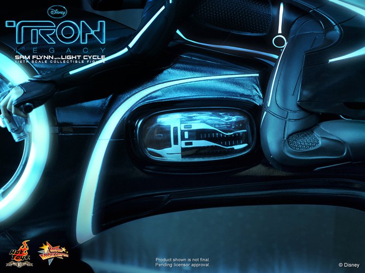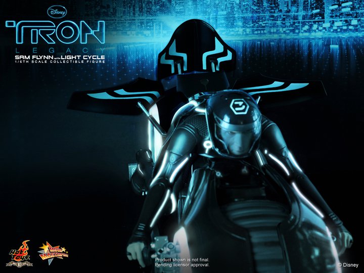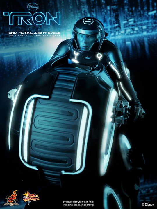 Hot Toys reveals their first 1/6th scale action figure from the upcoming Disney movie TRON: Legacy: Sam Flynn with Light Cycle.