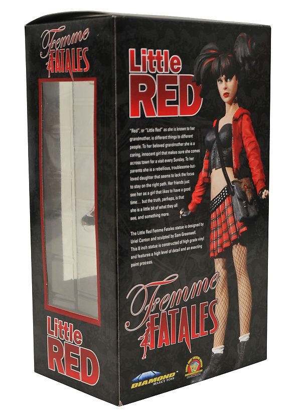 It's a wrap. Diamond Select Toys provides a packaged look at their next 8-inch tall Femme Fatales statue: LITTLE RED. A modern day reimagining of the classic fairy tale character, the Art Asylum/ Sam Greenwell sculpted Little Red is ready to take on the wolf in trendy Goth attire.