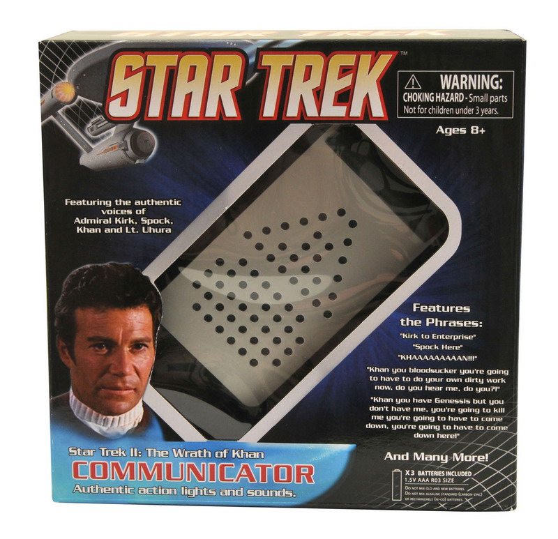[B]Diamond Select Toys[/B provides final production pictures of their Star Trek: The Wrath of Khan communicator in package. The device features voice clip mode, screaming Kirk mode ("KHAAANNNN!"), and callback mode. Plays back many of your favorite voice clips from the movie.