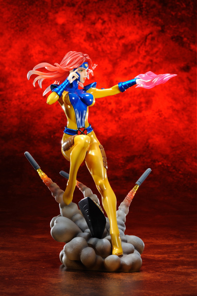Jean Grey (pictured above) will receive Koto's Bishoujo ("pretty girl") treatment based on an original character reinterpretation of her X-Men Vol. 2 #1 look by illustrator Shunya Yamashita. She tands nearly 8 ½ inches tall (in the current Marvel Bishoujo 1/7th scale) atop an exclusive georama base – a massive smoke cloud from which bursts the X-Jet and a trio of missiles. Arriving this July priced at a SRP of $59.99.