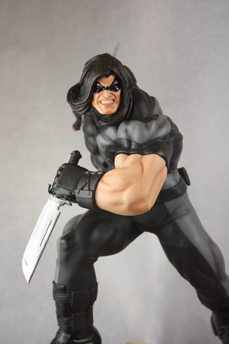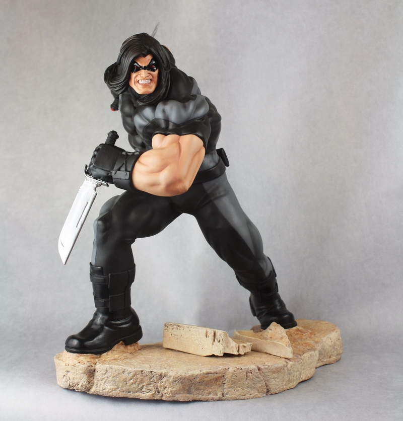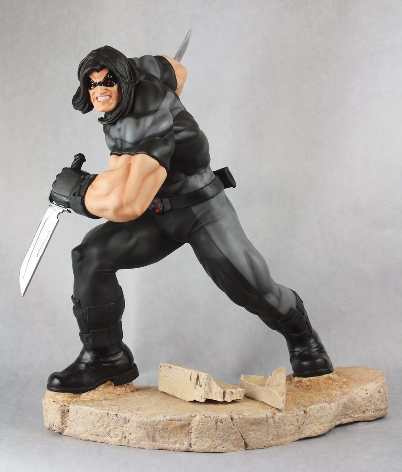 Warpath (below) is the third in a series of all-new X-Force Fine Art Statues. Sculpted by Erick Sosa with a pose and concept based on an original design by the "Silva Brothers," Warpath stands nearly 12 inches tall (in 1/6th scale). The mutant heros base is a special georama terrain inspired by the battle-damaged Apocalypse Temple. Coming in August priced at a SRP of $199.99.