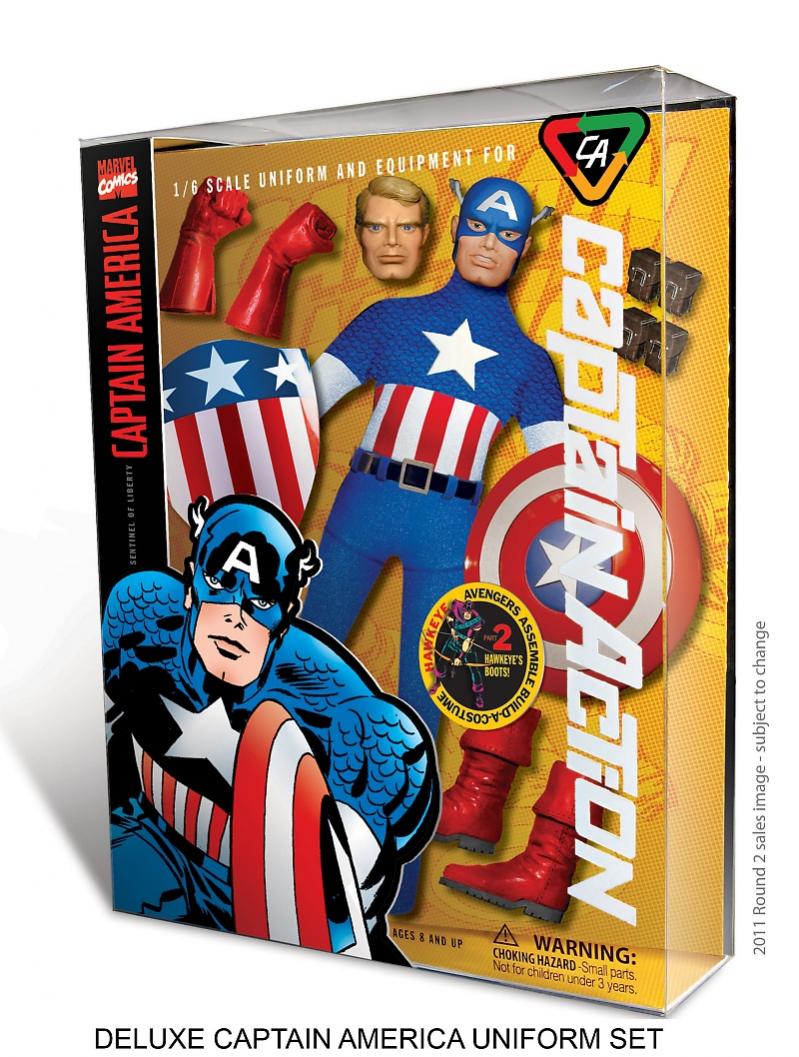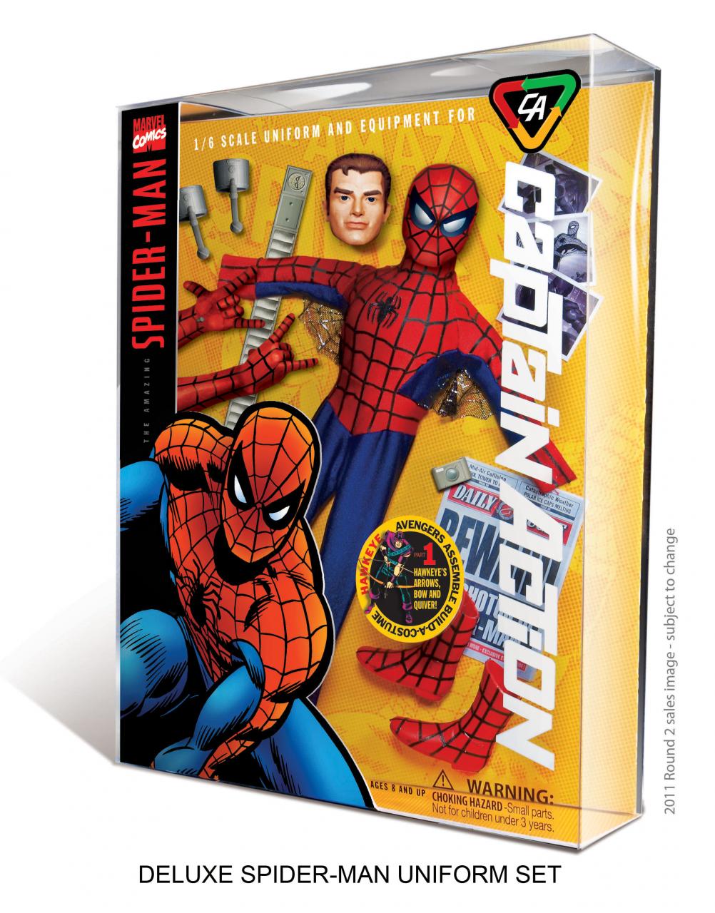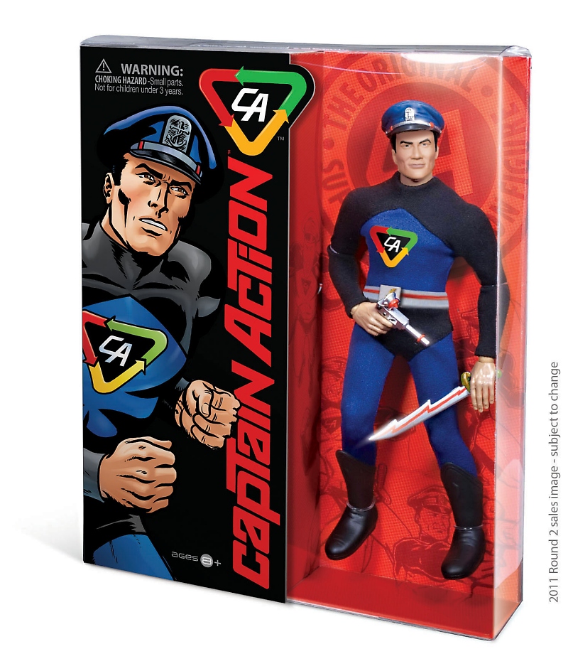 Round 2 announces that, for the first time in over 40 years, Captain Action will once again be associated with Marvel Comics characters. 1/6-scale Captain Action costume sets of Spider-Man and Captain America will debut Fall 2011 at Toys"R"Us and other specialty retailers, to be followed by additional releases of Marvel character costume sets, including Iron Man and Thor, in 2012.