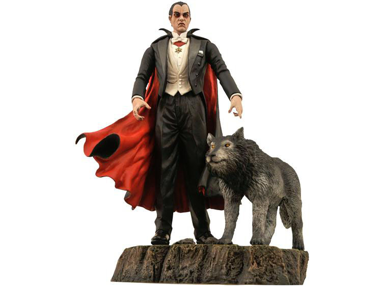 Following last year's debut of The Wolf Man, Creature from the Black Lagoon and The Mummy comes this new Universal Monsters assortment from Diamond Select Toys. Coming this fall will be Count Dracula and Frankenstein's Monster. These "Select" versions include an exclusive paint scheme as well as a detailed accessory not available to the Mass Market: Wolf companion for The Count and lab table for Frank.