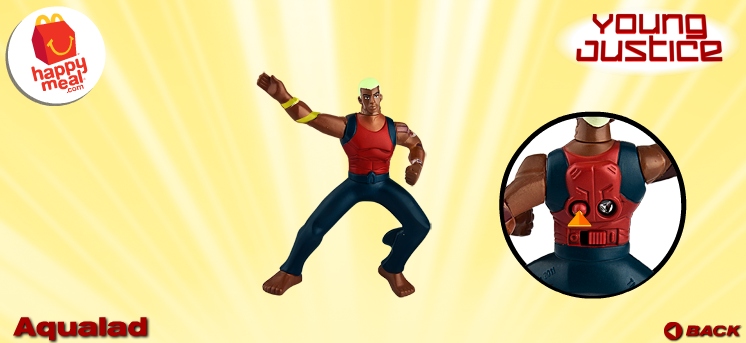 Participating McDonalds are now offering Happy Meal toys pulled from the Cartoon Network's new Young Justice animated series. There are eight premium figures to collect. These include: