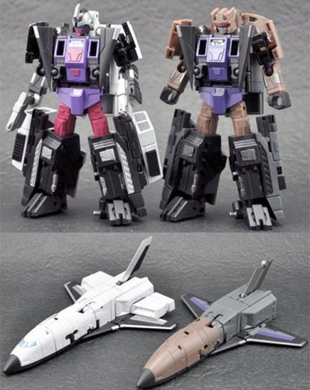 FansProject, a third-party Transformers manufacturer, is releasing a re-issue of their custom Munitioner and Explorer with a new paint job and deco as part of a new series called Causality: Crossfire Side Story. Just now added for pre-order at BigBadToyStore.com, these include (click to pre-order): Warcry and Flameblast. Both 'bots are slated to arrive this April priced at $44.99 each.