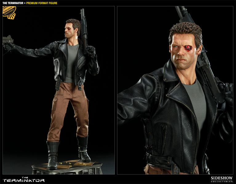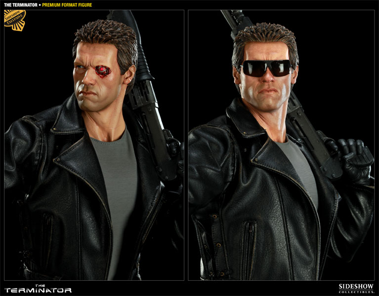 The Exclusive The Terminator Premium Format Figure, which will include a switch-out battle damaged portrait will be priced at $324.99 and have an Edition Size of 750 pieces worldwide. Additionally, a regular version, without the switch-out portrait will be available for Pre-Order and priced at $324.99. Both versions will be sold on a first come, first served basis, and will have the FLEXPay option available as a payment choice.