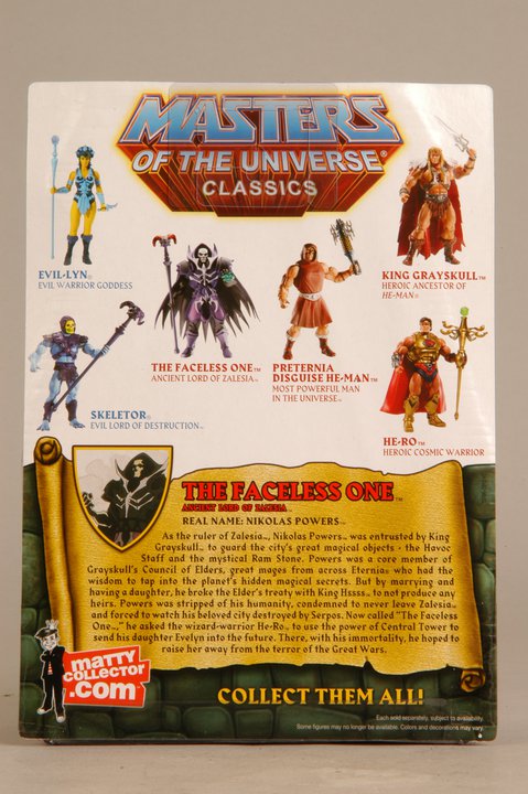 Mattel has just posted packaged images of the upcoming Club Eternia figure of The Faceless One along with the following statement: