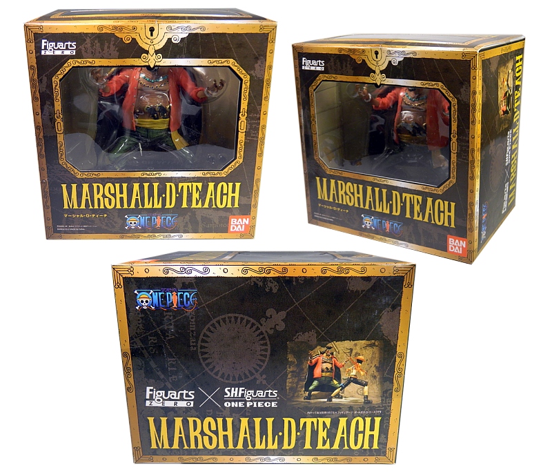 PACKAGING: The new Figuarts ZERO PVC statues are all boxed within window-box style packages proportionate to each particular character’s size. The outside of the box features an ornate treasure box design which resemble the artistic style and feel of the animated series. The official One Piece logo is also present on the front, back and side panels of the package. Each package features a plastic window along the front and top of the box revealing the figure with from a birds eye and full frontal point of view. The treasure chest design on the outer box differs in style and color for each character which gives each collectible its own unique qualities in and out of the package alike. There are also several photographs of the static figure from various angles and in some cases, posed next to an S.H. Figuarts of another character.