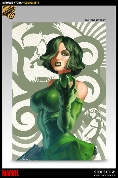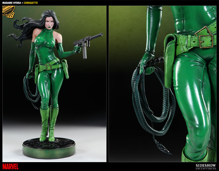 Madame Hydra (pictured above) will see release as a Sideshow Exclusive priced at $279.99. This sculpture includes an extra switch-out portrait and left hand with a machine gun, plus a fine art print. It will be limited to 500 pieces. A standard edition, sans all the bonus goodies, will be also be offered, also priced at $279.99.