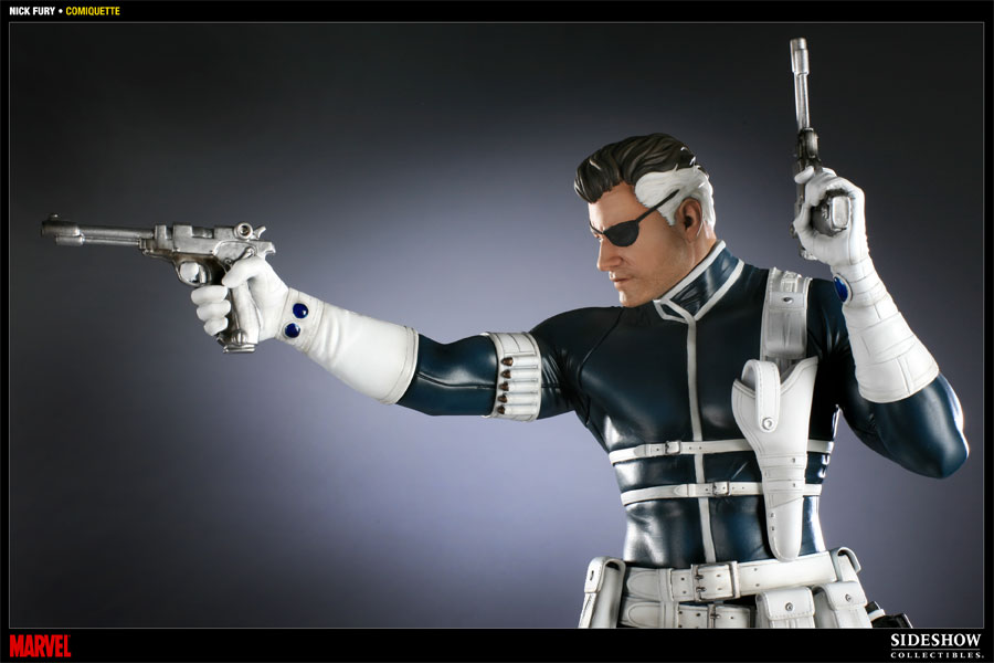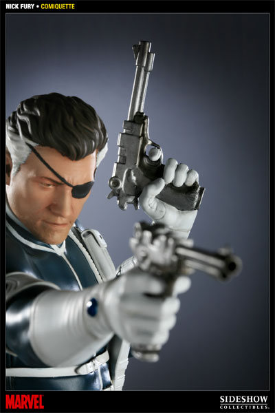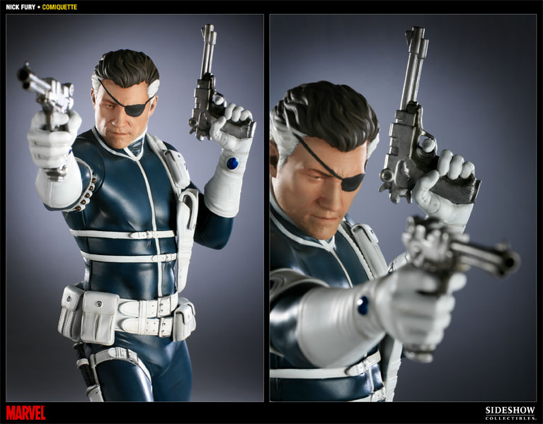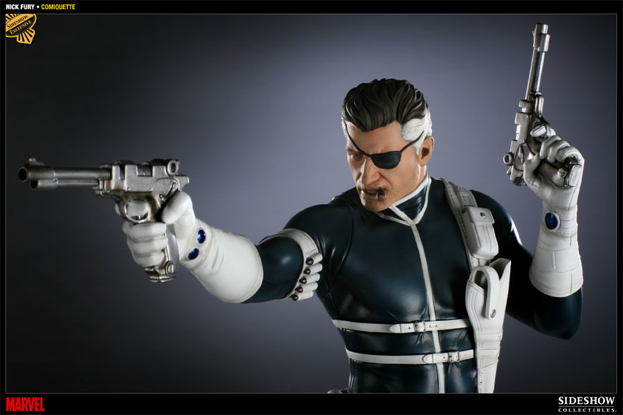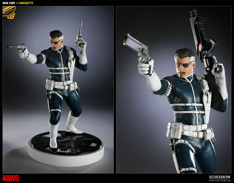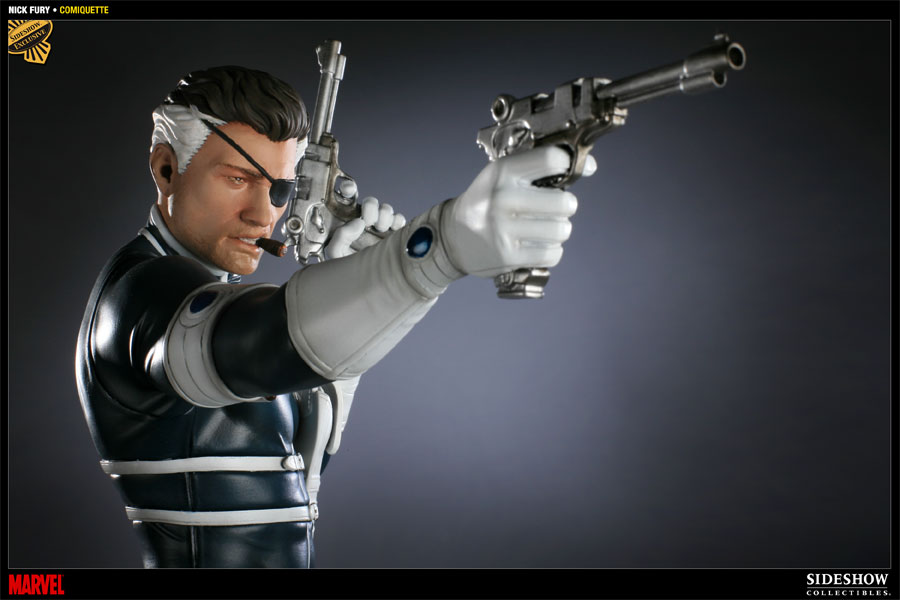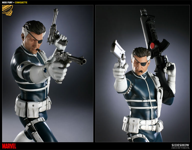 Nick Fury (below) receives a Sideshow Exclusive as well, limited to 500 pieces. Priced at $279.99, this version includes a switch-out portrait, hand holding a BFG weapon, and a fine art print. As with Madame Hydra, a standard edition will be offered for the same price of $279.99.