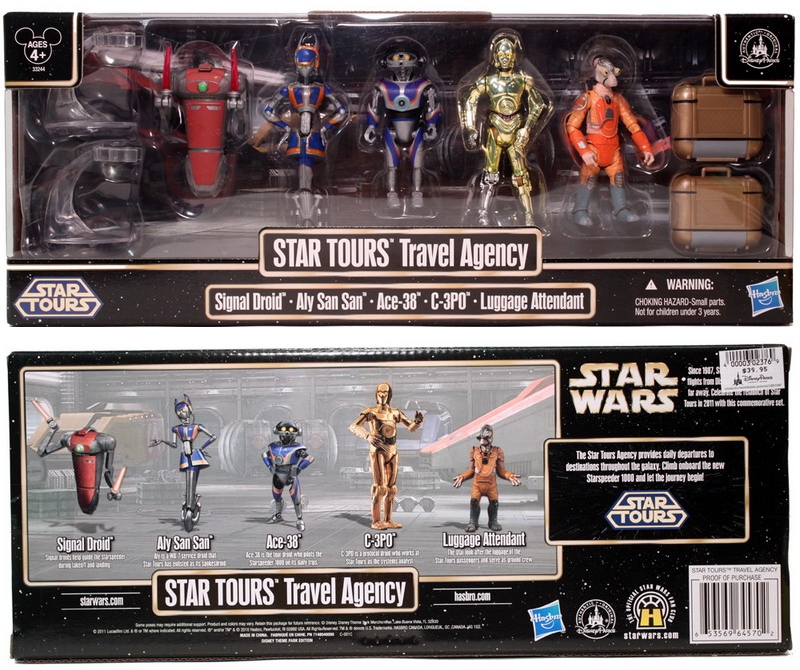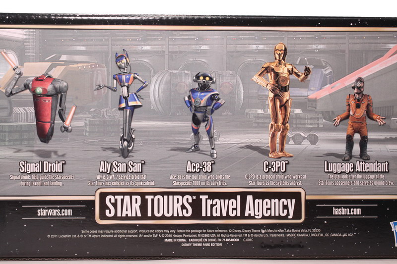 Two figure sets have been created and our sold exclusively at the Disney Parks: “STAR TOURS Travel Agency” and “Ambush at STAR TOURS”. We’ll be looking more closely at the agency in this review as it will be the more wanted set for the more seasoned Star Wars collector. It includes five figures and accessories sold for $39.95 ($8 per figure). This is an open edition set so you shouldn’t have any problem acquiring this in the years to come (advice: do not overpay on ebay). You can call Disney Deliverears as well to have them delivered right to your door.