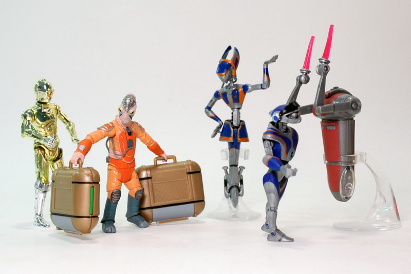 Signal Droid, Aly San San, Ace-38, C-3PO and Luggage Attendant...
