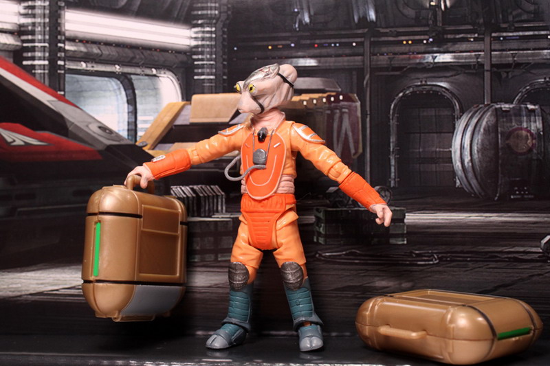 Repainted from the recent Utai figure, the luggage attendants show up in the pre-boarding video in great numbers. It’s also a great figure with 22 points of articulation. Dressed in an orange suit, Utai also serve Star Tours as ground crew. And as a luggage attendant, he comes with two pieces of space luggage! They open and close and add to the play value of the set.