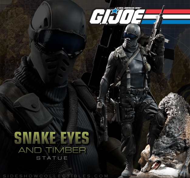 Sideshow Collectibles provides a sneak peek at their next GI Joe statue: Snake Eyes and Timber. Pre-orders for this fan favorite character start on June 23rd. Stay tuned early next week for a full reveal and further details.