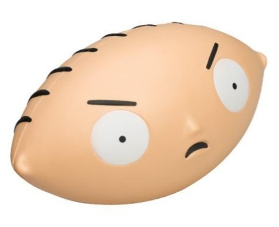 Each figure in the Family Guy Crazy Interactive World features a resistor that, when placed on the compatible playset, unlocks the real character voices and more than 40 phrases from the show. When the line hits retail this fall it will include some of the show’s most popular characters – Stewie, Peter, Brian, Cleveland, Quagmire and Lois – with additional characters and environments coming in Spring 2012. Also available from Playmates Toys in the fall will be a 7-inch soft foam Stewie ‘head shaped’ Football (pictured above).