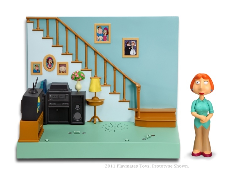 Playmates Toys and Twentieth Century Fox Consumer Products are teaming up once again, this time to launch a fresh new toy line for the animated hit series, FAMILY GUY. The fun starts this fall with the release of the FAMILY GUY CRAZY INTERACTIVE WORLD playset and figures, which uses real character voices and phrases from the series to give collectors and fans a completely unique new way to live out the adventures of Peter Griffon and his hilariously odd family of middle-class New Englanders.