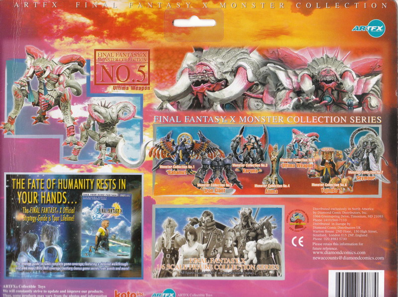 Anywho, back to what I was saying about looking good. You don't have to be a Final Fantasy fan to enjoy the great looking action figures that have been released; this Monster Collection from Kotobukiya being proof positive of that. Looking like they stepped out of a Godzilla film, these cool creatures packed tons of imaginative design. Ultima Weapon would probably give the ultimate 'zilla foe Destoroyah a run for his money and the twisted Anima could be something out of a Clive Barker film. A really cool collection of figures. Now if I could only say the same about Tidus' wardrobe...