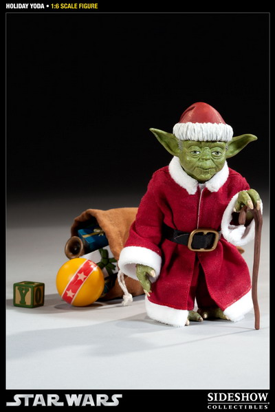 This festive Jedi is priced at $74.99 and scheduled to arrive 4th Qtr 2011. Holiday Yoda features: