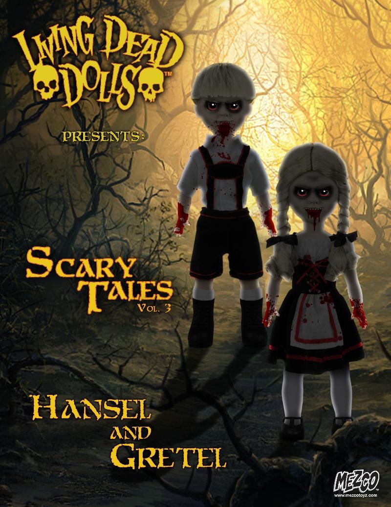 Mezco expands their sub-series of popular "Living Dead Dolls Presents" with Scary Tales Vol.3: Hansel & Gretel. Continuing the fairy tale theme established with Vol.2: Beauty and the Beast and Vol.1: Red Riding Hood and The Big Bad Wolf, this creepy duo pairs brother and sister in the well-known story of the witch and her candy home.