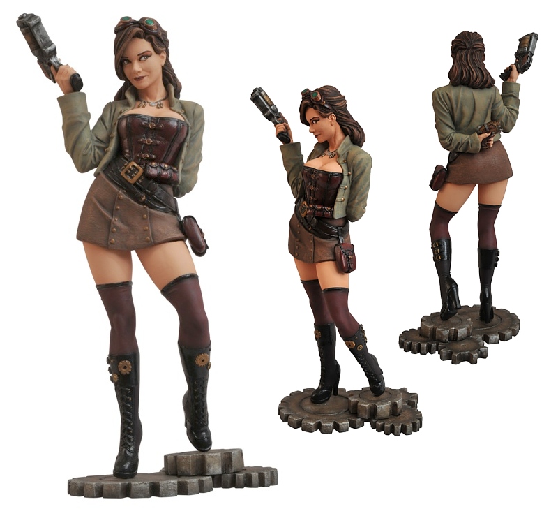 Combining science fiction with century-old fashion and technology, steampunk fandom is one of the fastest-growing genres in the world, as conventions spring up around the U.S. and mainstream movies plaster its tenets across every billboard. Inspired by the legions of steampunk cosplayers, Diamond Select Toys decided to add a similarly attired character to their Femme Fatales line of 9-inch PVC statues, and the result was Lexi, who hits comic shops and specialty stores next spring.