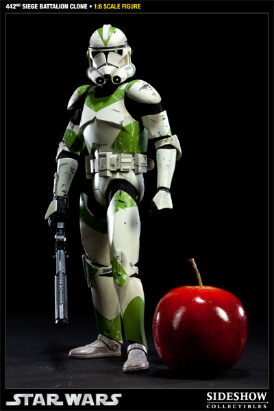 Sideshow presents a new addition to their growing collection of 12 inch Militaries of Star Wars figures: the 442nd Siege Battalion Clone Trooper. Pre-orders begin Thursday, December 8th, 2011, the clone priced at $89.99. Check out the new photos below.