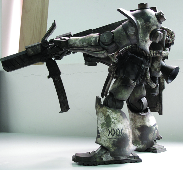 As we previously reported to you (see our story HERE), ThreeA was working on an original action figure interruption of Bandai's Gundam "Zaku" by artist Ashley Wood. While still no firm release date or pricing, ThreeA has released these new production photos and a statement that "Zaku is coming very soon". The Bandai x ThreeA Zaku will be offered through their online store: bambalandstore.com.