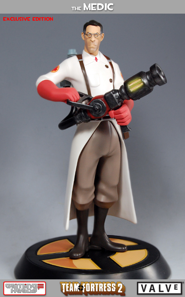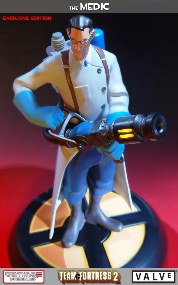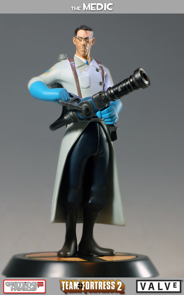 Following the release of The Soldier and Heavy from Valve's Team Fortress 2 comes The Medic. This popular support class in the hit multiplayer shooter will be offered in both red and blue team colors, each 13-inch tall statue limited to 750 units worldwide and priced at $219.99.