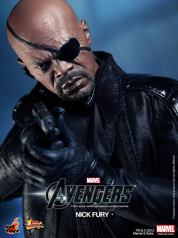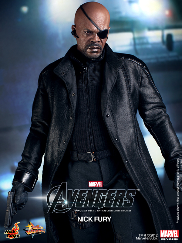 Hot Toys reveals their first limited edition collectible figurine from the upcoming superhero movie The Avengers: Nick Fury, the director of S.H.I.E.L.D. The movie-accurate collectible is specially crafted based on the image of Samuel L. Jackson as Nick Fury in the movie, highlighting a newly developed head sculpt, highly detailed costume, weapons and accessories.
