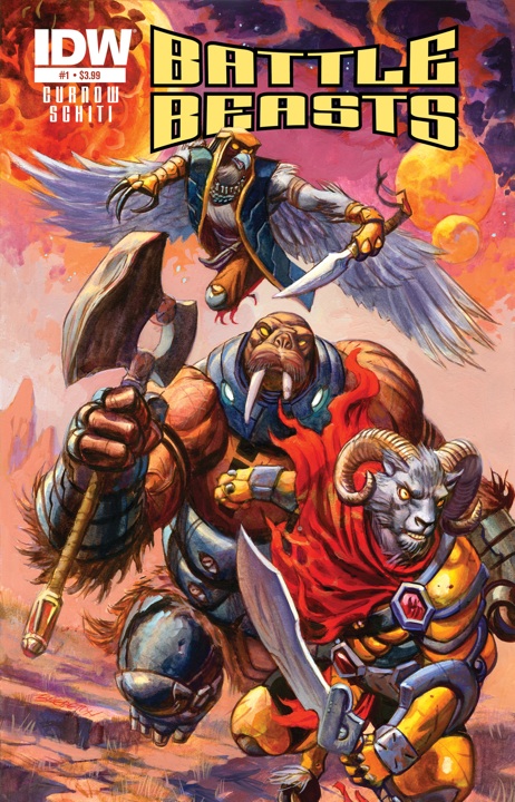 The mini-series is written by Bobby Curnow (Godzilla Legends, Night of 1000 Wolves) and penciled by Valerio Schiti (Teenage Mutant Ninja Turtles: Donatello, Dungeons & Dragons: Eberron). It focuses on a group of renegade Beasts who return to Earth to protect the ultimate weapon (and the human who activated it) from an armada of their violent brethren. The ashcan will reprint the first eight pages of issue #1 in full color, and fans will be able to get a free translucent Minimate of the ram Vorin while supplies last. Both will be given away during C2E2 by DST at booth #311.