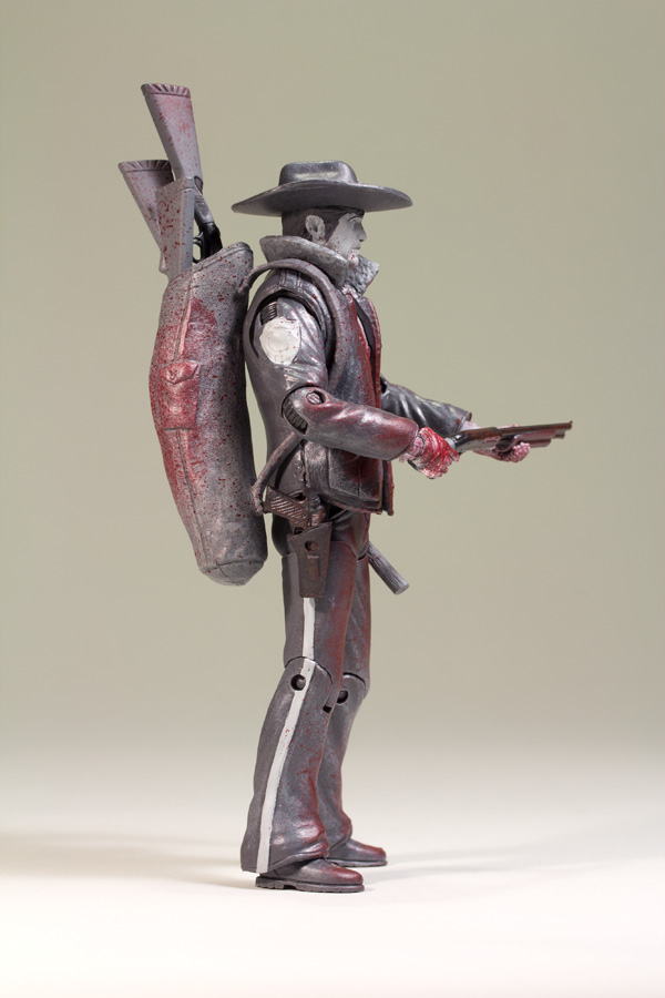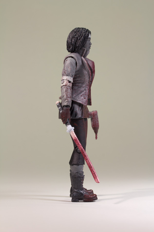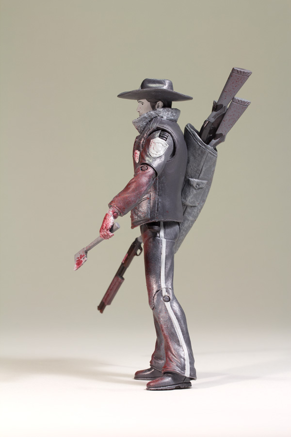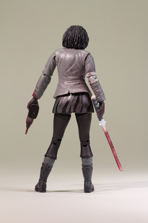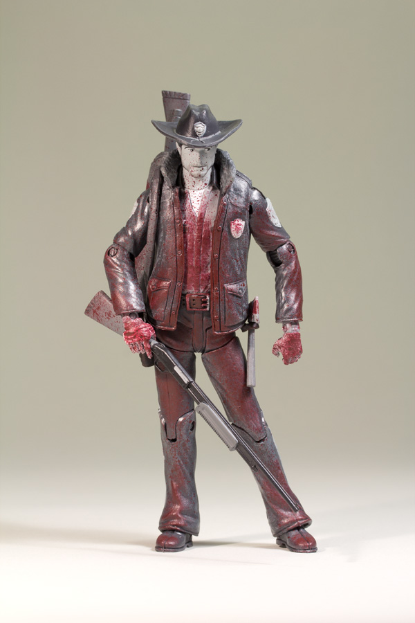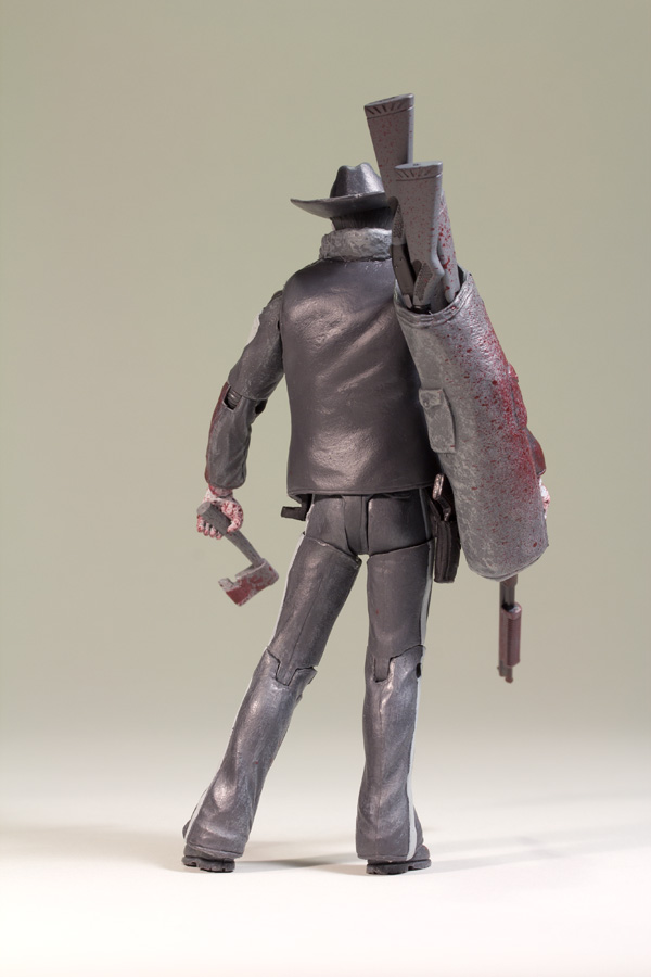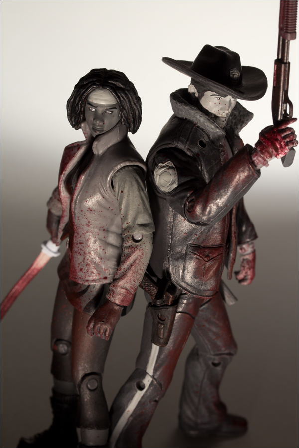 As reported in our story HERE, Diamond's PREVIEWS is offering Walking Dead fans an exclusive black and white, blood-splattered figure 2-pack (order code: JAN120621). The set, shipping in May, features variants of Officer Rick Grimes (with bag of weapons) and Michonne (comes with sword and tools of revenge). Check out the new photos in our gallery below.